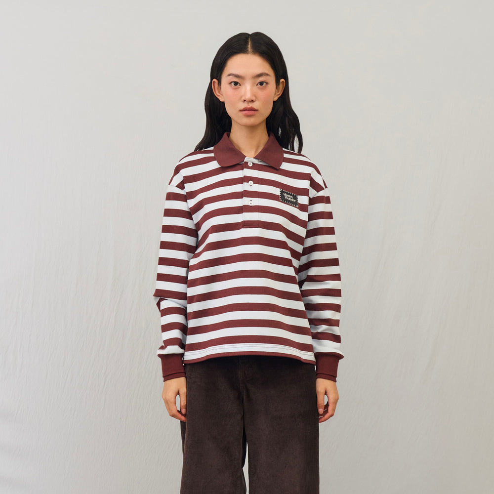 Harmony Long-Sleeve Stripe polo | Mocha Sky