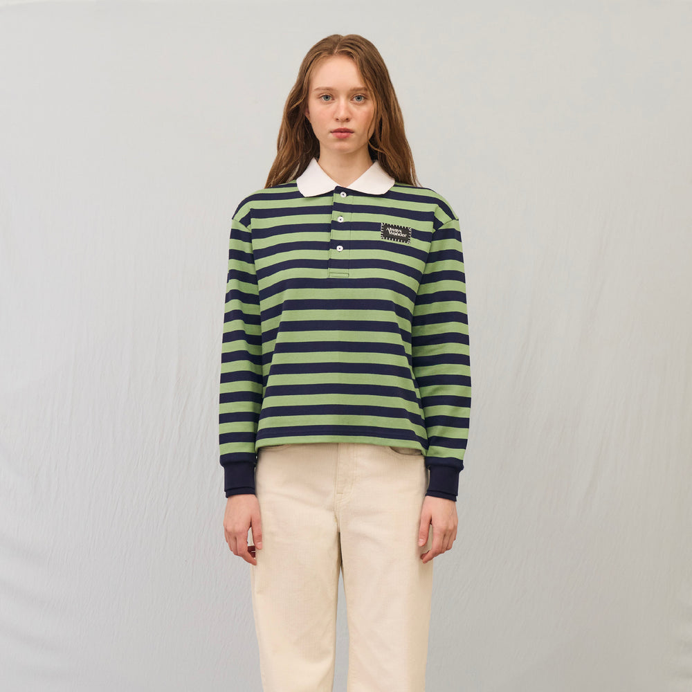 Harmony Long-Sleeve Stripe polo | Matcha Night