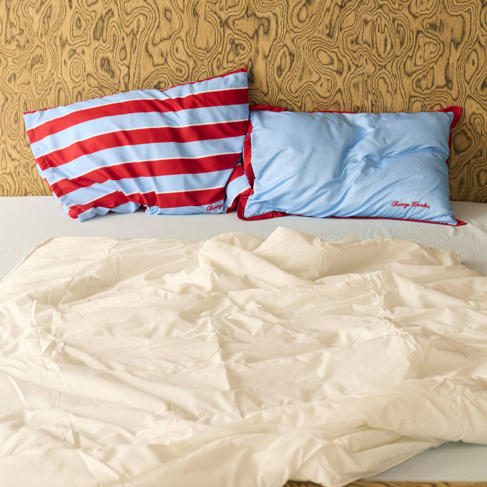 Homey Comfort Pillow Case | Clear sky blue with cherry accent